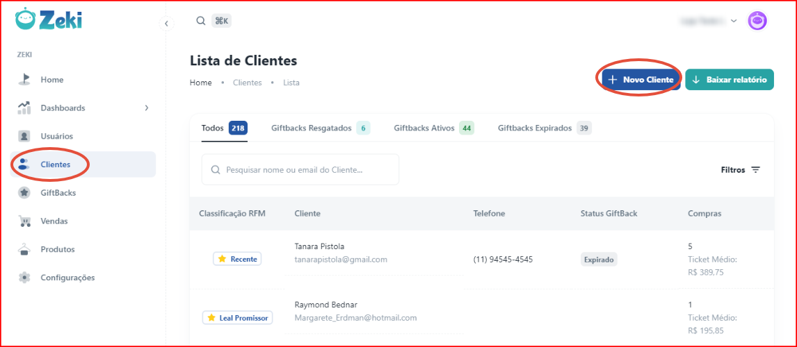 No módulo de Clientes, você irá criar novos registros de clientes de forma simples e intuitiva: