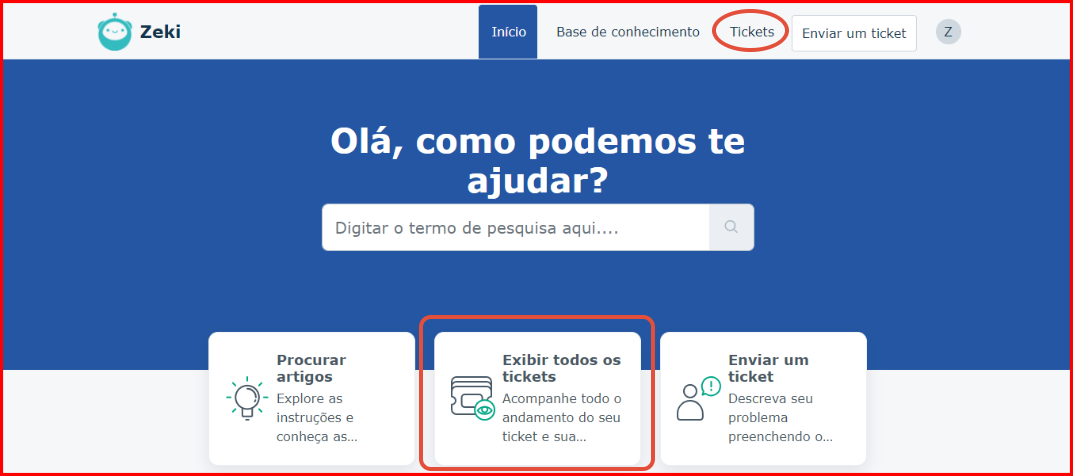 Registre-se na central do Zeki, para ficar por dentro do status do seu Ticket.