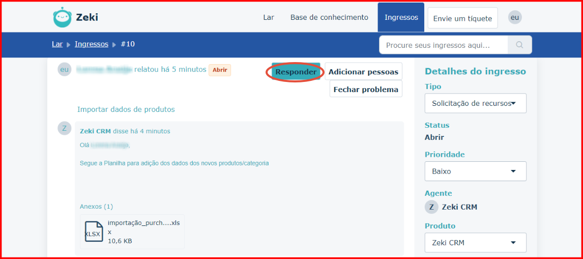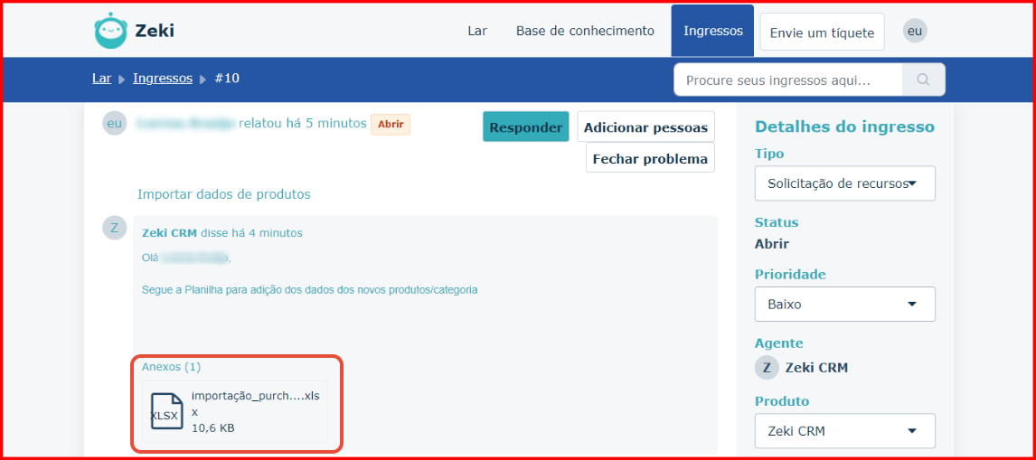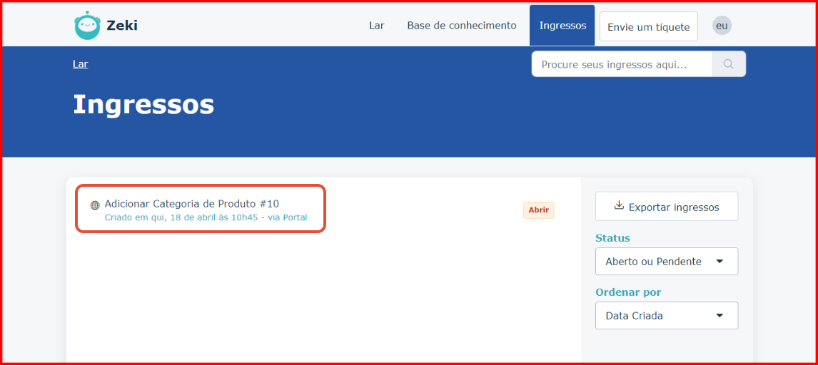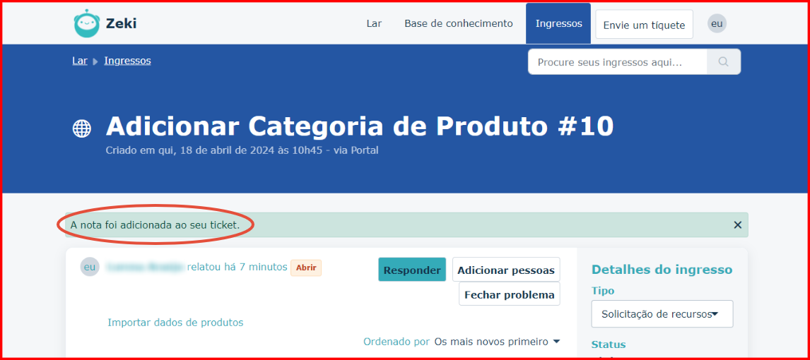 Depois de enviar o ticket, você receberá uma confirmação de que ele foi recebido. Agora, aguarde a equipe de suporte do ZEKI responder ao seu ticket.